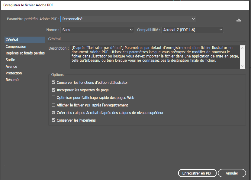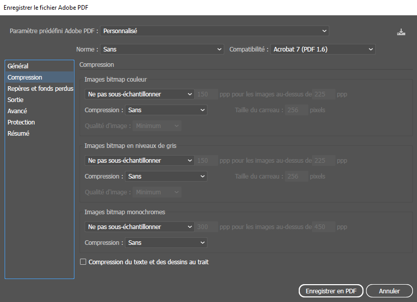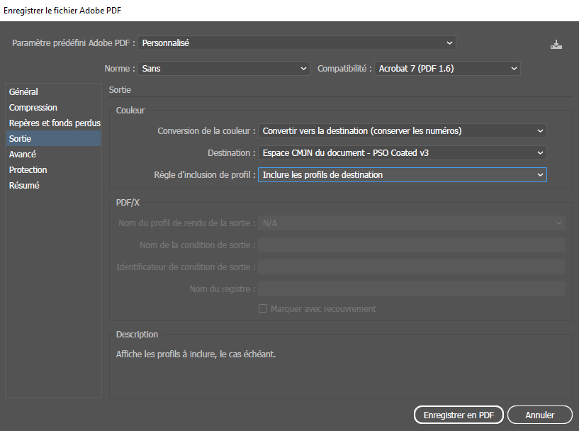 ATTENTION selon la norme utilisée elle ne gère pas la transparence. Il faut vérifier ce que nous dit l’imprimeur ou par défaut on peu laisser sur sans