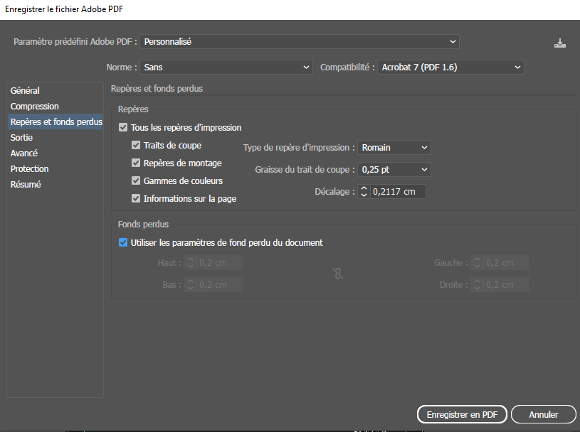 ATTENTION ne pas oublier de laisser coché les fond perdu du document.