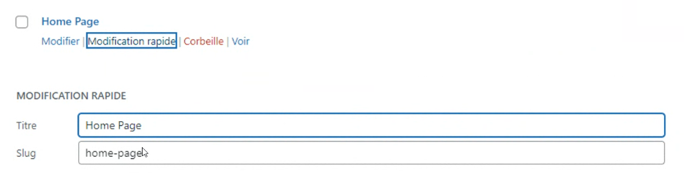 On modifie l’url sur le « slug » → Il faut renommer tous les slug même s’il n’apparaissent pas sur la page