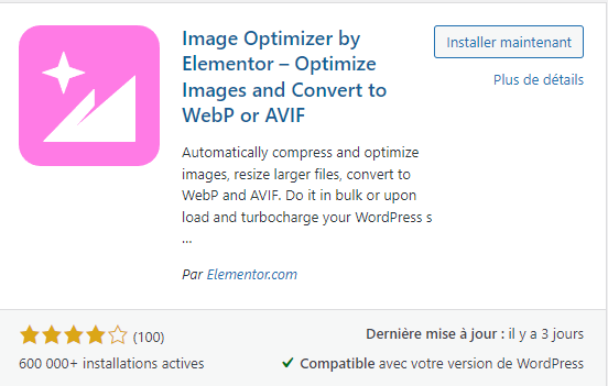 elementor optimizer → pour optimiser les images (payant mais gratuit pour les 200 premières images)