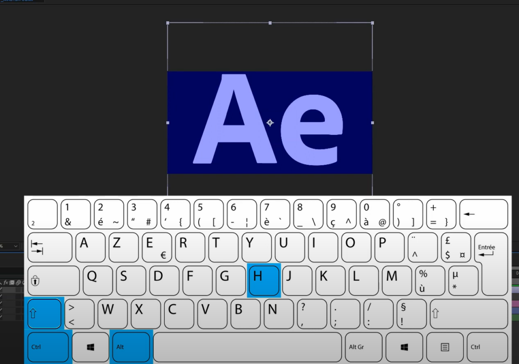 - Pour adapter l’item à la hauteur de la composition → ctrl + alt + shift + G