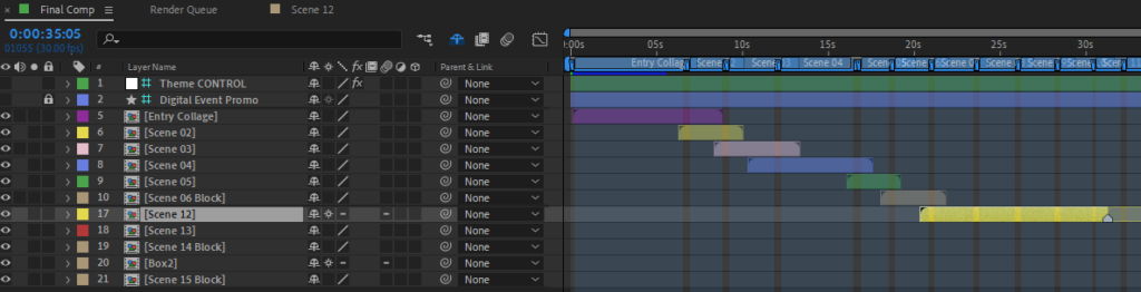 Ceci est ma composition principale et je vais travailler dans la « Scene 12 »