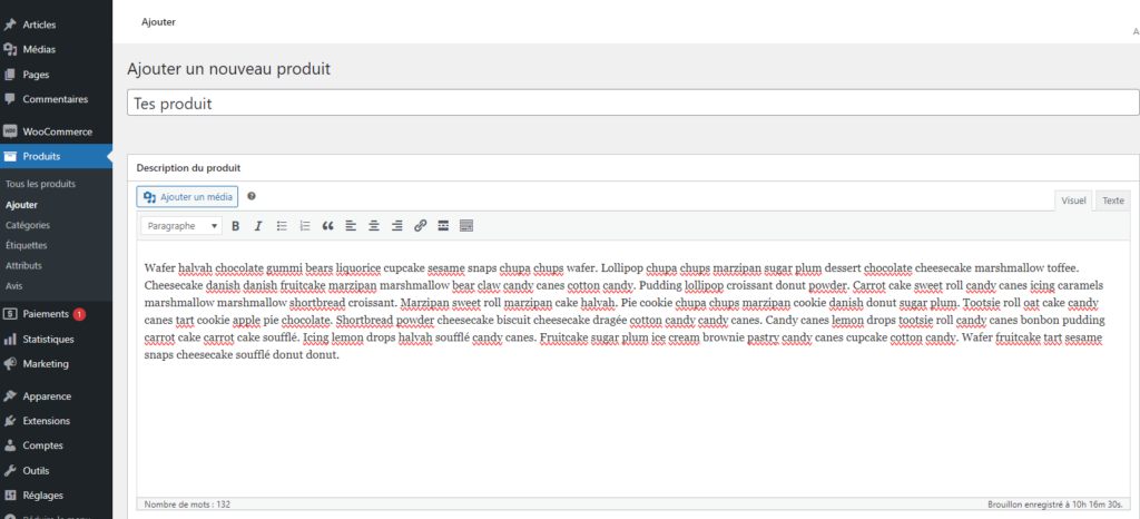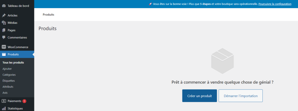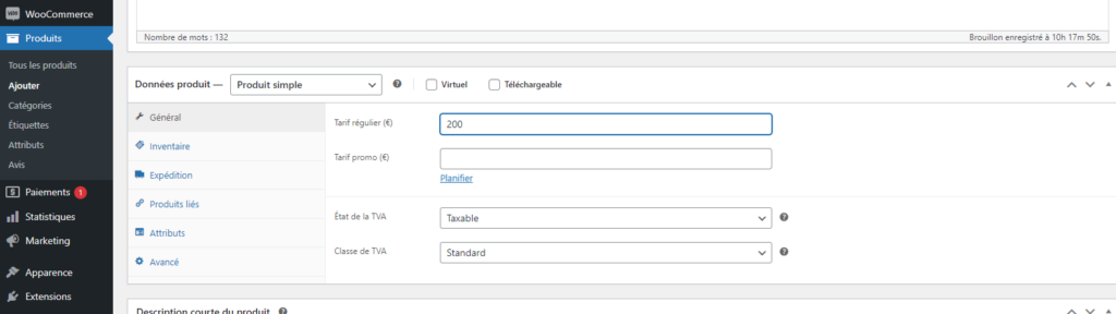 Vérifier que l’affichage tien compte nos réglages : Créer un produit
