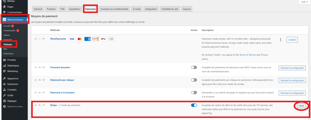 Plugin stripe pour WooCommerce