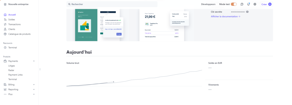 → On va alors joindre les comptes Stripe et paypal à ceux du client → On fait alors le test avec 10 centimes