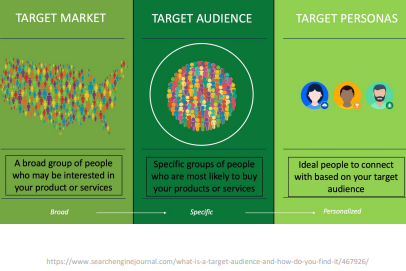 Cible : Les personnes que l’on veut atteindre au sans le plus large : c’est un groupe spécifique visé par un produit ou service. Marketing Persona : profil fictif représentant un acheteur type d’un produit ou service. Les personnes qui achètent le produit ou le service. User Persona : profil fictif représentant un utilisateur type d’un produit ou service ou interface. Représentent les personnes qui utilisent le produit ou le service ou une interface utilisateur.