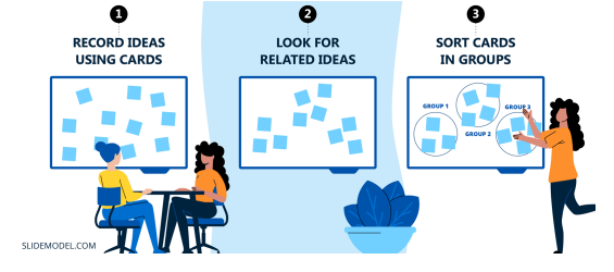 Affinity Mapping : C’est l’organisation et catégorisation des informations qualitatives recueillies par le biais d’interviews ou de sessions de brainstorming.
