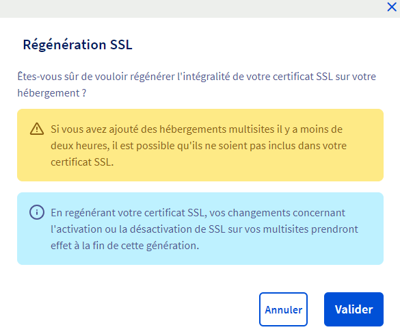 Ensuite, je régénère mon certificat SSL pour sécuriser la navigation sur mon site avec le protocole HTTPS.
