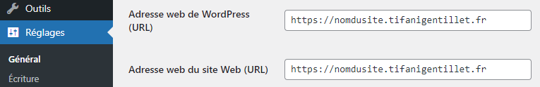 Dernière étape ; je me reconnecte au back office de mon site et dans les réglages, je remplace les deux adresses URL par ma nouvelle URL de redirection.