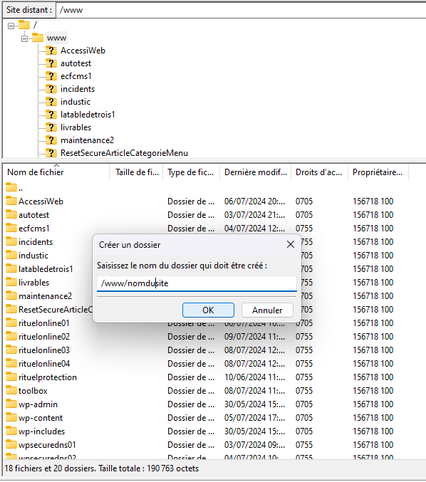 Dans le répertoire www, je crée un sous-répertoire et lui donne un nom.