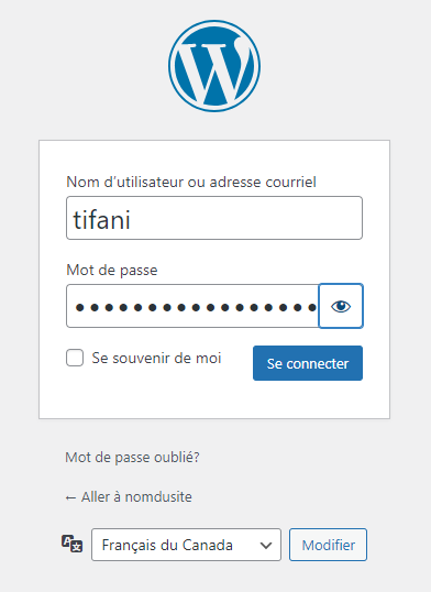 Je sauvegarde, puis je m’assure que je peux bien accéder au backoffice du site via ma nouvelle URL et ma phrase secrète.